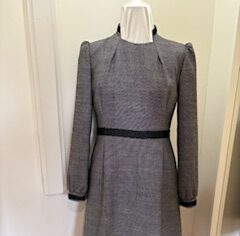 薄手ウールで夏以外のスリーシーズン着られるワンピースはシンプルなデザインです。ウエストに黒のケミカルレースがアクセント。 ジャケットの合わせ方次第で様々な楽しみ方ができます。スカーフでのアレンジも効果的に楽しんで頂けます。